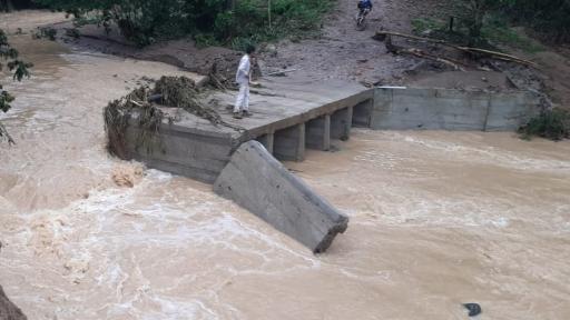 Puente colapsó por creciente tras fuertes lluvias en Santa Rosa, Bolívar