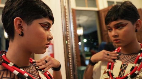 "Me siento privilegiada de haber podido asistir a un evento así en este lugar. Por lo general, estamos excluidos de este tipo de sitios. Hoy puedo ver a mi gente contar su historia a través de la moda", dice Bianca Mura, novelista indígena de 24 años.