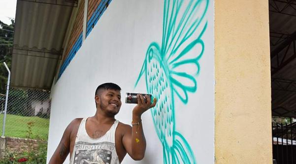 "Cuando se hizo esa minga (trabajo colectivo con el fin de lograr un objetivo común), fue como si la cabeza me explotara porque empecé a ver gente de otros países y de Colombia haciendo muralismo. Yo no pensaba que eso era posible, pintar cosas que yo conocía de mi territorio, la vida, de cómo vivimos los indígenas, me gustó mucho. Entonces me interesé por el muralismo y empecé a investigar más sobre todo el proceso que encierra este arte".